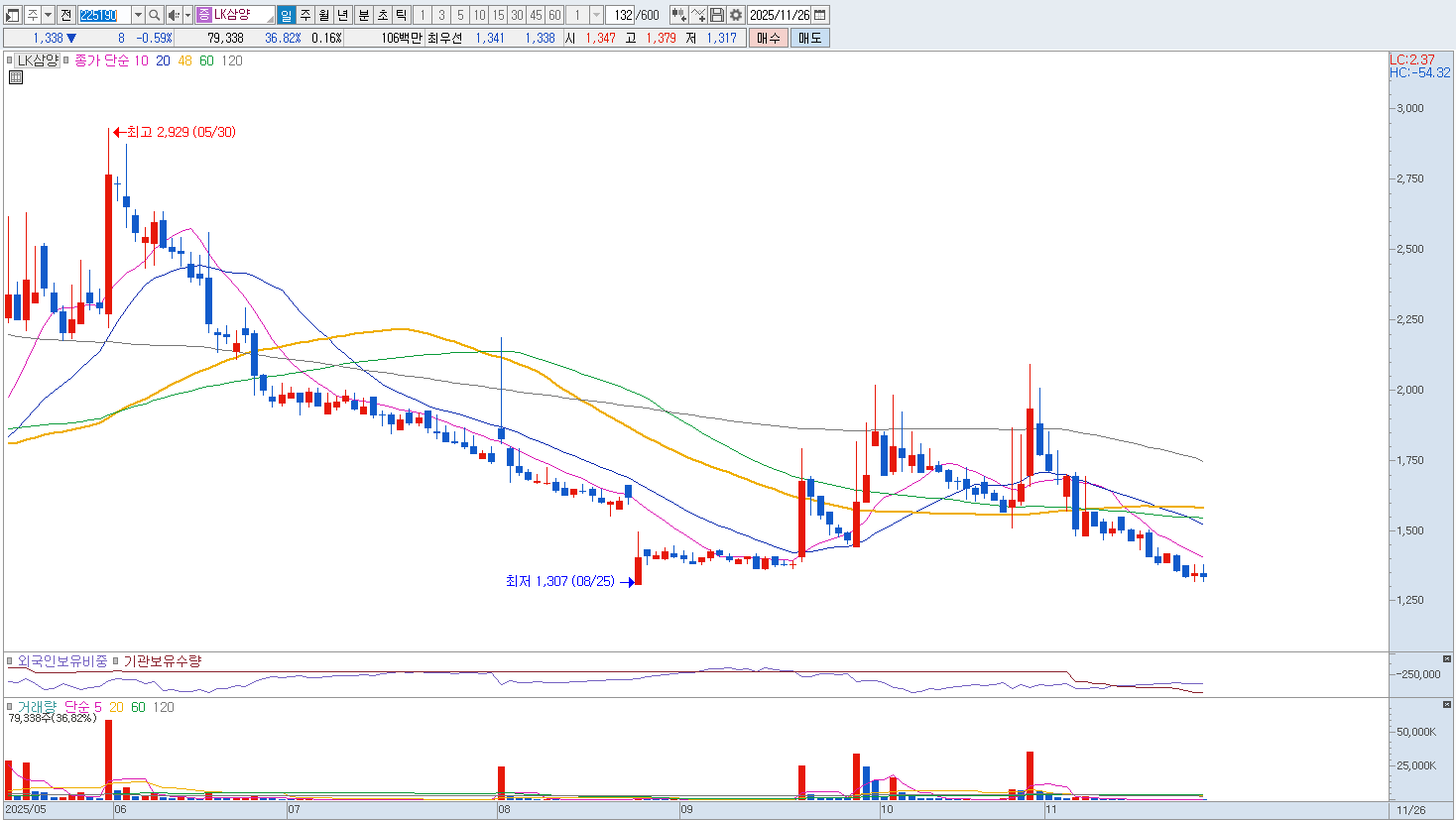 잠재적 위험 요소로는 유가 및 나프타 등 주요 원자재 가격 변동에 대한 민감도가 높다는 점입니다. 원자재 가격이 급등할 경우 제조 원가 상승 압박으로 인해 수익성이 악화될 위험이 있습니다. 또한, 화학 소재 시장은 후발 주자 및 해외 경쟁사와의 가격 경쟁이 치열하여 마진율 확보에 어려움이 있을 수 있으며, 전방 산업인 건설 및 소비재 시장의 경기 변동에 따라 소재 수요가 민감하게 반응한다는 점도 주요 리스크입니다. 반등시마다 비중 축소 의견입니다. |