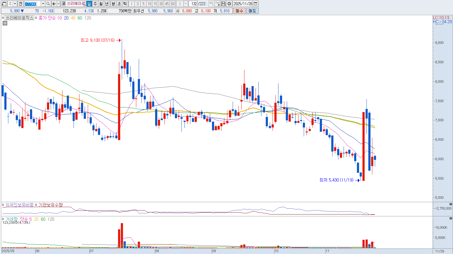 그러나 잠재적 위험 요소로는 파운드리(위탁 생산)에 전적으로 의존하는 사업 구조입니다. 글로벌 파운드리 공급망의 변화나 생산 단가 상승은 동사의 제조 원가와 공급 안정성에 직접적인 영향을 미칠 수 있습니다. 또한, 칩 설계 산업은 기술 변화가 매우 빠르고 경쟁사 대비 독보적인 기술적 우위를 지속적으로 확보하지 못할 경우 시장에서 빠르게 뒤처질 위험이 있습니다. 전방 산업의 설비 투자 및 최종 소비재 수요 변동에 따라 칩 수요가 민감하게 반응한다는 점도 리스크입니다. 비중 축소 의견입니다. |