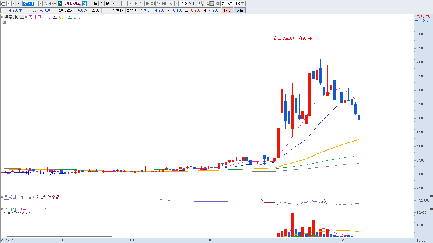 유투바이오는 주로 임상 검체 검사 및 검진 서비스를 제공하는 기업으로, 매도 의견의 근거는 동사가 영위하는 사업 분야의 높은 경쟁 강도와 상대적으로 낮은 기술적 진입 장벽에 있습니다. 임상 검사 시장은 대형 검사 기관을 중심으로 단가 경쟁이 치열하게 전개되고 있으며, 후발 주자들이 새로운 장비 도입 및 서비스 확장을 통해 시장에 쉽게 진입할 수 있어 동사의 시장 점유율 유지가 쉽지 않은 구조입니다.