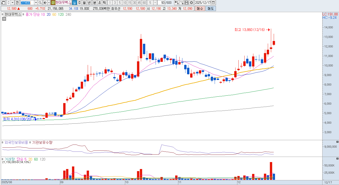 현대무벡스에 대한 매도 의견은 동사의 주력인 물류 자동화 사업이 대형 프로젝트 수주에 의존하여 실적 변동성이 높고, 시장 경쟁 심화에 따른 마진율 압박 리스크에 근거합니다.
