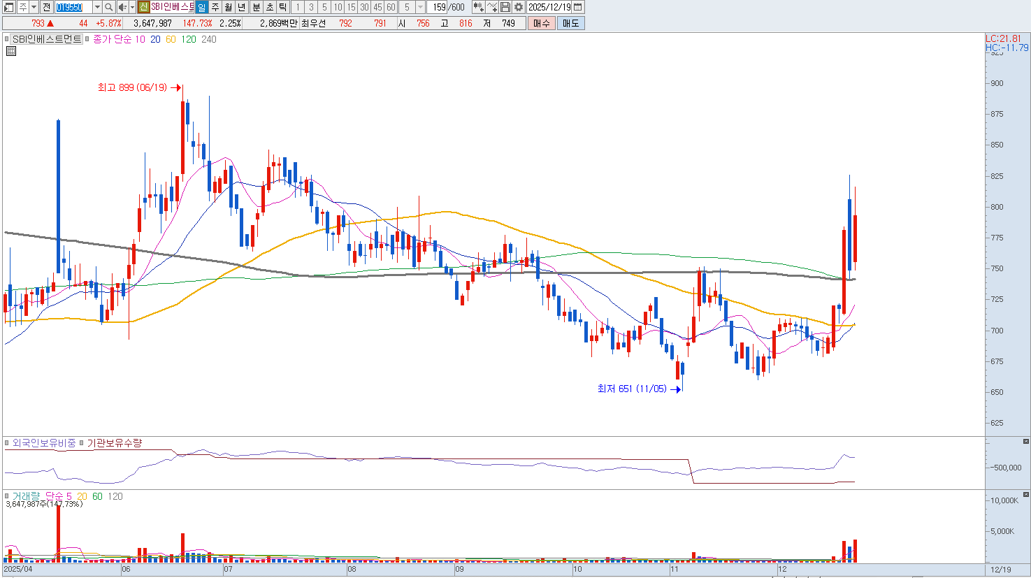 특히 글로벌 산업 트렌드에 발맞춰 인공지능과 우주 항공, 로보틱스 등 미래 핵심 기술 분야에 대한 선제적인 투자를 단행함으로써 차세대 산업 생태계 형성에 기여하고 있으며 이는 향후 투자 회수 단계에서 높은 수익성을 기대하게 만드는 강력한 자산이 됩니다. 다수의 블라인드 펀드와 프로젝트 펀드를 안정적으로 운용하며 유망 스타트업의 전 주기에 걸친 성장을 지원하는 역량은 기업공개 시장의 흐름과 맞물려 동사의 가치를 더욱 돋보이게 하는 요소입니다. 중요한 지지라인은 760원입니다. |