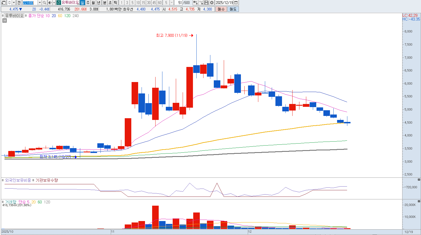 코로나19 진단 검사 특수로 누렸던 과거의 실적이 엔데믹 이후 완전히 소멸하며 현재 심각한 역성장을 기록하고 있습니다. 주력 사업의 공백을 메울 만한 신사업 모델이 아직 구체화되지 않았으며 영업손실 폭은 오히려 확대되는 양상입니다. 최근 주가를 움직인 동력은 기업 본연의 가치가 아닌 경영권 분쟁이라는 일시적 테마에 기인하여 변동성이 극도로 높습니다. 동종 업종인 헬스케어 기업들과 비교했을 때 실적 대비 주가 수준인 P/S 배수가 여전히 높은 구간에 머물러 있습니다. 경영권 분쟁은 결과와 상관없이 이슈가 종료되는 시점에 투자자들의 차익 실현 매물이 쏟아지며 주가가 급락할 위험이 큽니다. 재무 구조 개선을 위한 추가적인 유상증자나 자금 조달 가능성이 열려 있어 기존 주주들의 가치 희석 우려가 존재합니다. 따라서 실질적인 영업이익 흑자 전환이 가시화되기 전까지는 기술적 반등을 활용한 비중 축소가 유효한 전략으로 판단됩니다. |