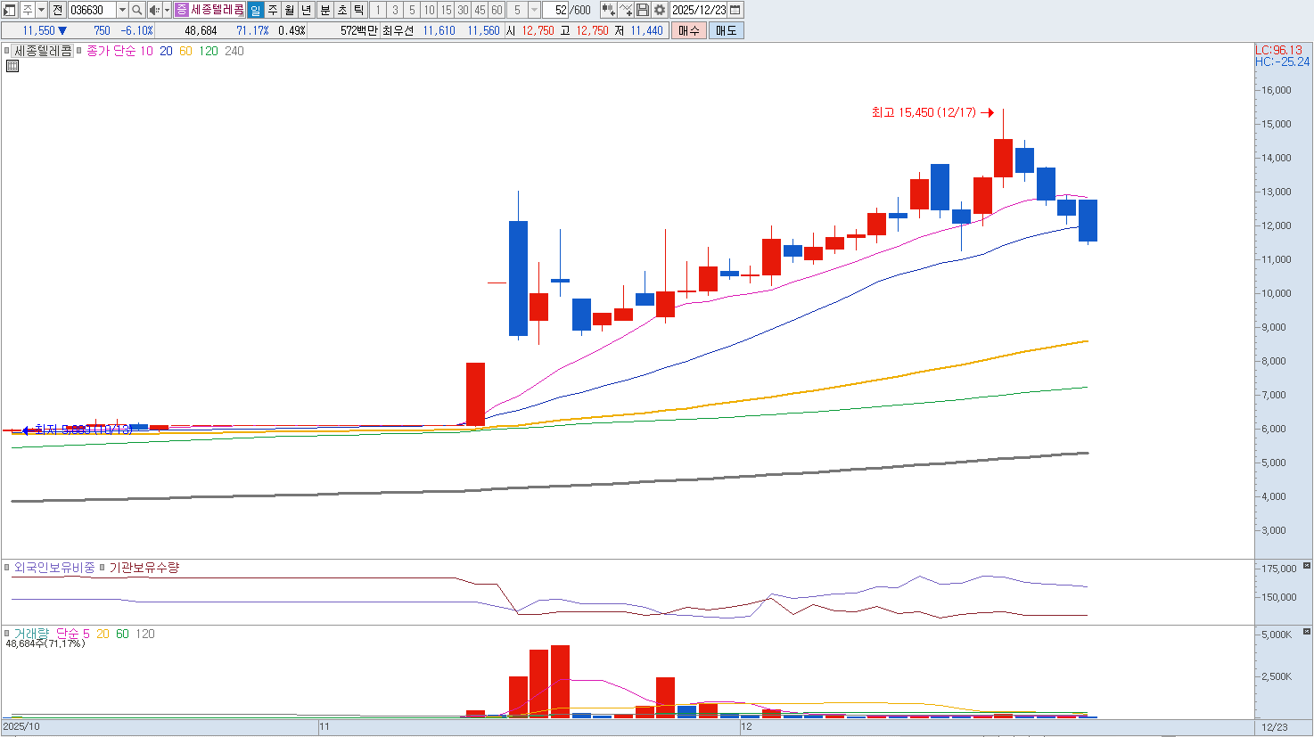 주식 시장에서는 장기간 저가주라는 인식이 강해 테마성 수급에 의한 단기 변동성이 크게 나타나는 경향이 있으므로 사업의 실질적인 펀더멘털 변화보다는 일시적인 이슈에 의한 가격 등락에 유의해야 합니다. 결론적으로 기존 통신업의 안정성과 신사업의 잠재력을 동시에 보유하고 있으나 핵심 사업의 폭발적인 성장세를 증명할 수 있는 구체적인 지표 확인이 병행되어야만 기업 가치의 재평가가 가능할 것으로 판단됩니다. 중요 지지선은 10,500원입니다. |