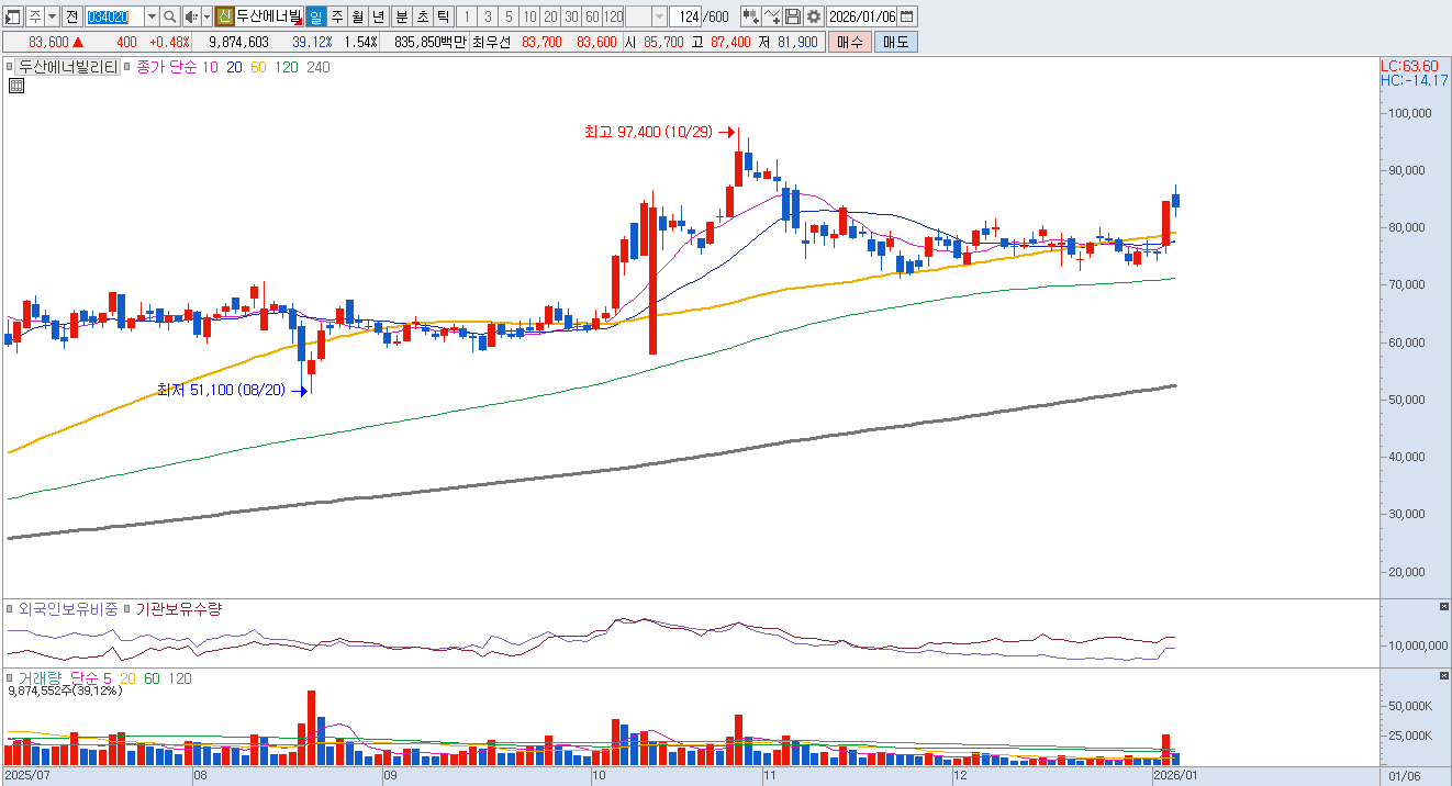 두산에너빌리티는 최근 체코 원전 수주를 둘러싼 프랑스 EDF와의 법적 분쟁과 가처분 신청 등 대외적인 행정 절차 지연 리스크가 불거지며 본계약 체결 시점에 대한 시장의 의구심이 커지고 있으며, 특히 2026년부터 본격적인 실적 반영이 예상됨에도 불구하고 단기적으로는 원전 관련 대형 프로젝트들의 실제 착공 지연 가능성이 주가 상승 모멘텀을 현저히 약화시키고 있습니다.