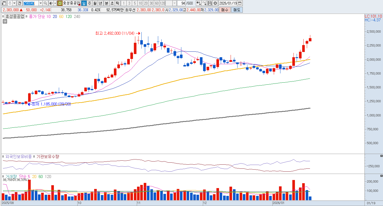 효성중공업은 북미 전력망 교체 수요에 힘입어 전례 없는 호황을 누려왔으나 최근 시장에서는 업황이 정점에 도달했다는 피크아웃 우려가 확산되고 있습니다.