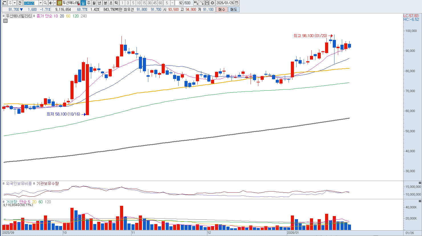 그럼에도 불구하고 원자력 산업은 국가 에너지 정책과 지정학적 구도에 따라 사업의 연속성이 크게 좌우되는 특징이 있어 정책 변화에 따른 리스크를 항상 염두에 두어야 합니다. 원전 프로젝트는 계약부터 매출 인식까지의 주기가 매우 길어 수주 소식이 곧바로 실적 개선으로 이어지지 않는 시차가 존재하며 과거 저가 수주 물량의 마진 압박 요인이 해소되는 과정도 지켜봐야 합니다. 기술적 완성도와 별개로 대외 변수에 의한 프로젝트 지연 가능성은 언제든 발생할 수 있는 구조적 약점인 만큼 모멘텀 중심의 접근보다는 실제 기자재 납품 주기를 고려한 신중한 관점이 요구됩니다. 중요 지지라인은 87,500원입니다. |