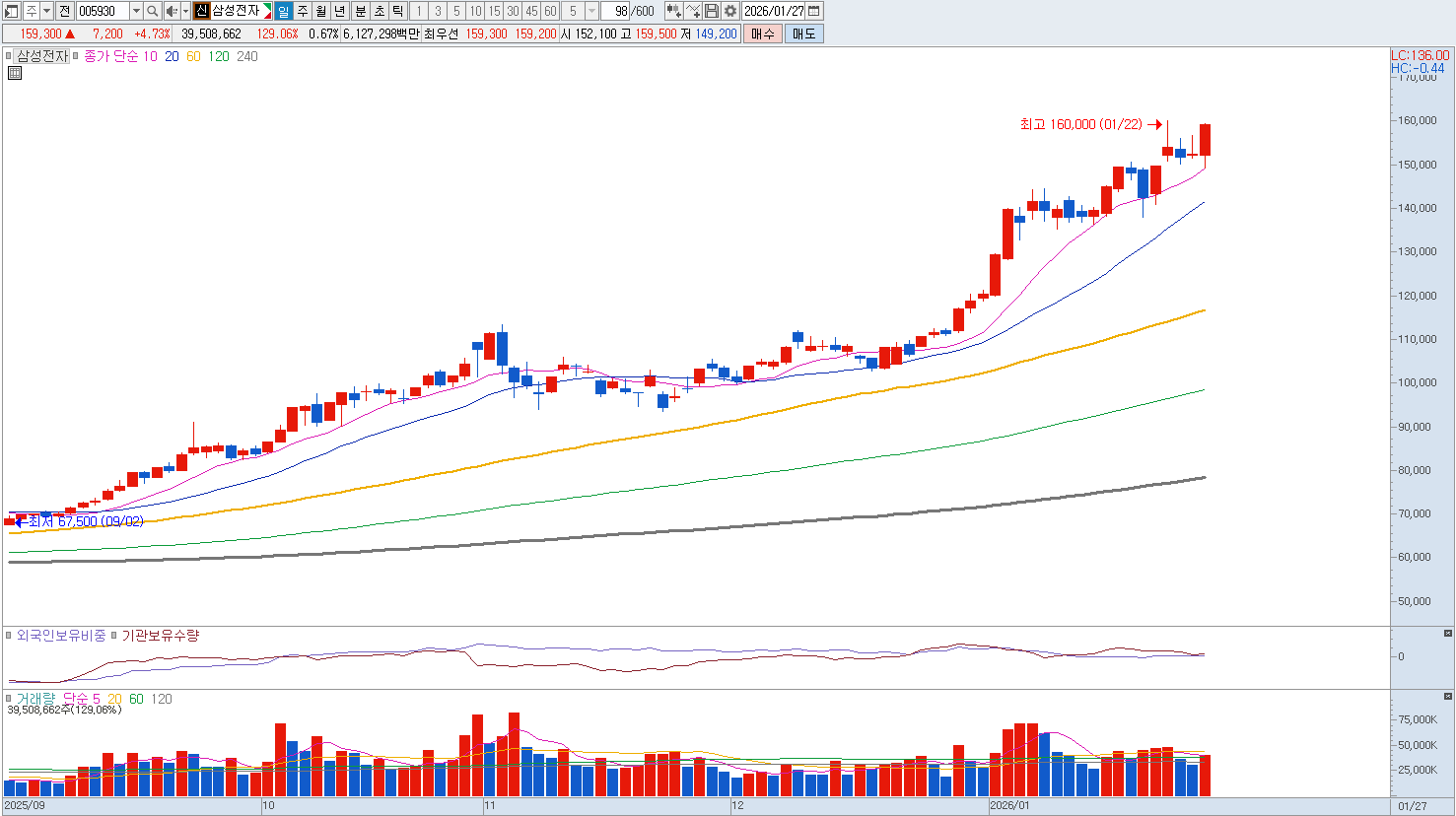 파운드리 부문에서도 2나노 공정의 수율 안정화가 가시화되면서 글로벌 빅테크 기업들의 물량을 재확보하는 '리바운드' 시나리오가 작동하고 있습니다. 주가 측면에서는 실적 성장세 대비 여전히 저평가 구간에 머물러 있다는 인식이 강하며, 대규모 자사주 취득 및 소각 등 적극적인 주주 환원 정책이 병행되면서 '10만 전자'를 넘어선 새로운 가격대를 탐색하는 강력한 우상향 흐름을 보일 것으로 기대됩니다. 최상단 20만원까지 열려 있습니다. |