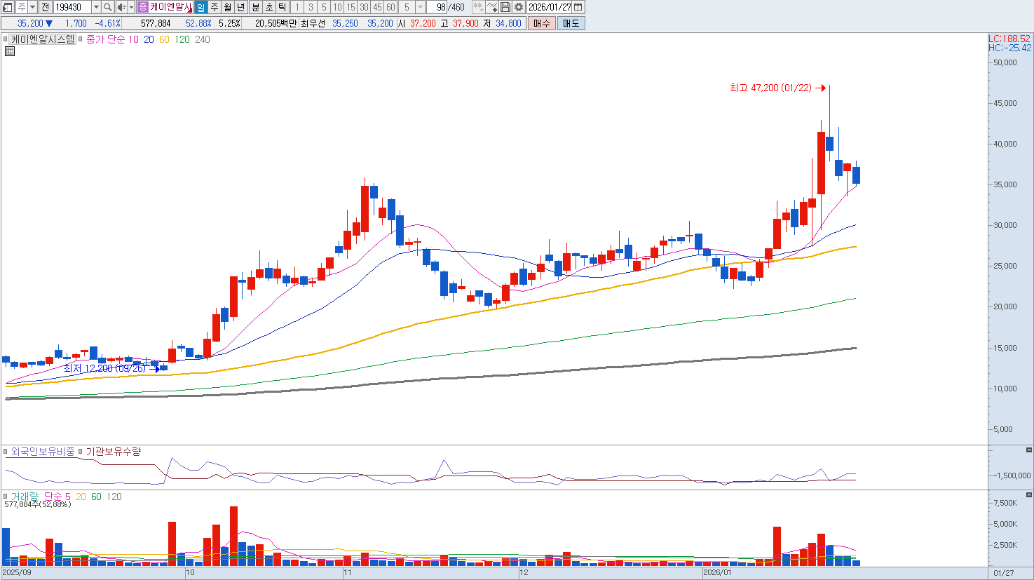 특히 원전 해체 로봇이나 심해 탐사 장비 등 특수 목적용 로봇 시장에서 국산화 대체 수요가 강력하게 발생하고 있어, 정부의 로봇 산업 육성 정책과 맞물려 강력한 테마 형성도 가능합니다. 현재 주가는 수주 지연에 따른 실망 매물이 충분히 소화된 바닥권에 위치해 있으므로, 분기별 수주 잔고 증가율을 확인하며 대응한다면 로봇 섹터 내 숨겨진 진주로서의 가치를 누릴 수 있을 것입니다. 대형 액츄에이터 기업과 시가 총액 차이를 좁혀나갈 것으로 보입니다. 중요 지지라인은 32,500원입니다. |