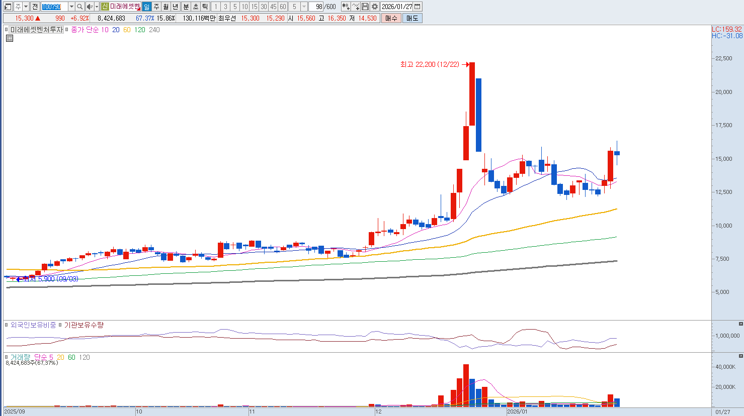 미래에셋그룹 차원에서 제시한 2026년 투자 키워드인 'H.O.R.S.E(휴머노이드, 슈퍼 사이클 등)'에 부합하는 유망 스타트업들을 대거 보유하고 있어, 투자 자산의 평가 이익이 장부상 가치를 크게 상회할 가능성이 큽니다. 다만 VC 주가는 시장의 유동성과 신규 상장 시장의 열기에 매우 민감하게 반응하므로, 금리 인하 국면이 지속되는지 여부가 주가 반등의 강도를 결정하는 핵심 변수가 될 것입니다.