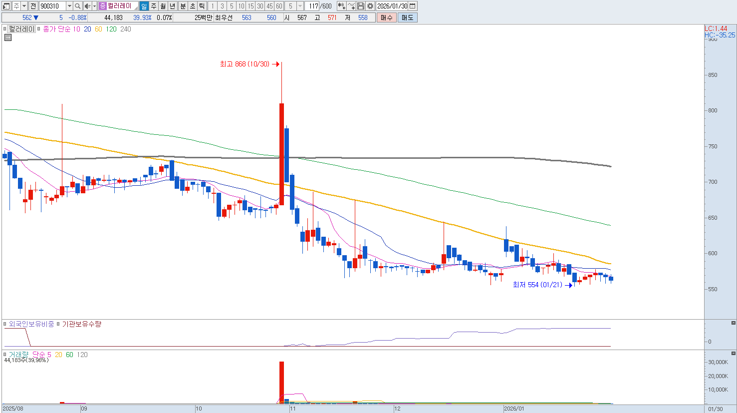 컬러레이는 중국계 기업으로 국내 증시에 상장되어 있으나, 이른바 '차이나 디스카운트'를 넘어선 근본적인 사업적 한계에 부딪혀 있습니다. 가장 큰 매도 사유는 화장품용 진주광택 안료 시장의 경쟁 심화와 중국 내 로컬 브랜드들의 부침입니다. 과거 한국 화장품의 인기와 함께 성장했으나, 이제는 중국 현지 업체들의 기술 추격으로 가격 경쟁력이 약화되었고 글로벌 브랜드들의 원료 다변화 전략으로 인해 점유율 방어가 힘겨운 상황입니다.