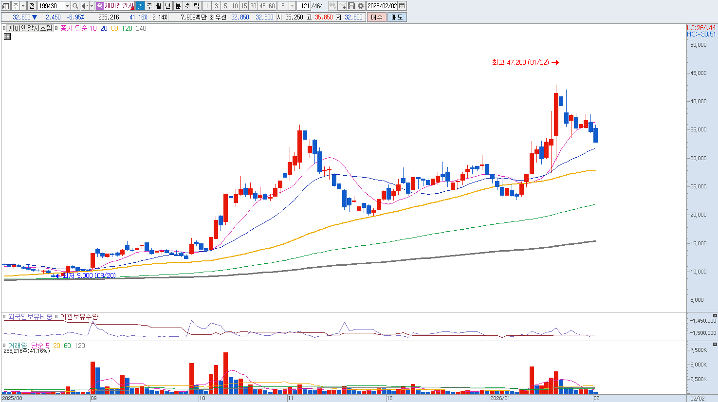 로봇 테마의 열풍이 지나가고 실질적인 실적 지표를 요구하는 시장 환경에서 케이엔알시스템의 재무적 취약성은 매도 관점의 가장 큰 이유입니다. |