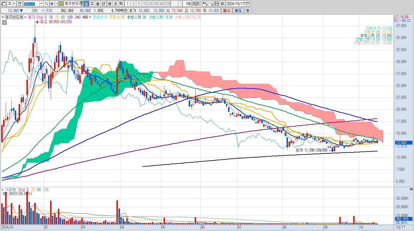 올해 초 구간에서 온디바이스 AI 확산 수혜 기대감에 가장 강하게 올랐던 시장 대장주에 해당하고, 현 구간에서는 그러한 시세분출 이후 종목의 주가는 빠지는 흐름이 나타나고 있습니다. 저점과 고점이 낮아지고 있어서 현재는 보유하는 기간이 길어질수록 투자로써 메리트는 상당히 떨어진다고 볼 수 있으며, 현재 매수전략을 본다면 손절라인은 12000원. 상승시 17000원 이상부터는 분할매도를 통한 익절 체결하시는 것을 권유드리고 싶습니다.