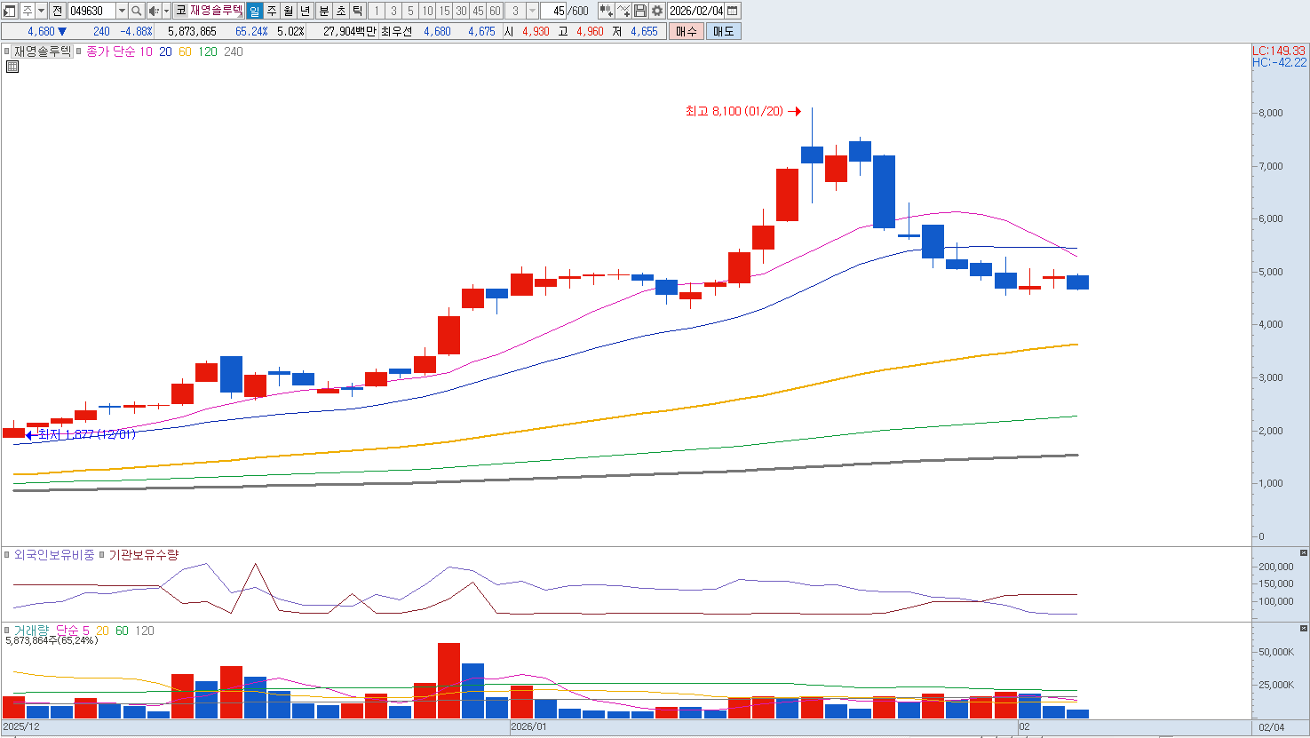 마지막으로 글로벌 거시 경제 환경과 환율 변동에 따른 리스크입니다. 재영솔루텍은 주요 생산 기지를 베트남에 두고 있으며 원재료의 수입 비중이 높아 환율 변동에 매우 민감한 수익 구조를 가지고 있습니다. 2026년 현재와 같은 고환율 기조와 글로벌 공급망의 불안정성은 물류비와 원가 상승을 유발하여 영업 효율을 떨어뜨리는 주요 원인이 됩니다. 해외 공장의 운영 리스크와 현지 인건비 상승 압력 또한 무시할 수 없는 부분이며 이는 본사가 통제하기 어려운 외부 변수로서 기업 가치를 훼손하는 상시적인 위협 요인입니다. 매도의견입니다. |
