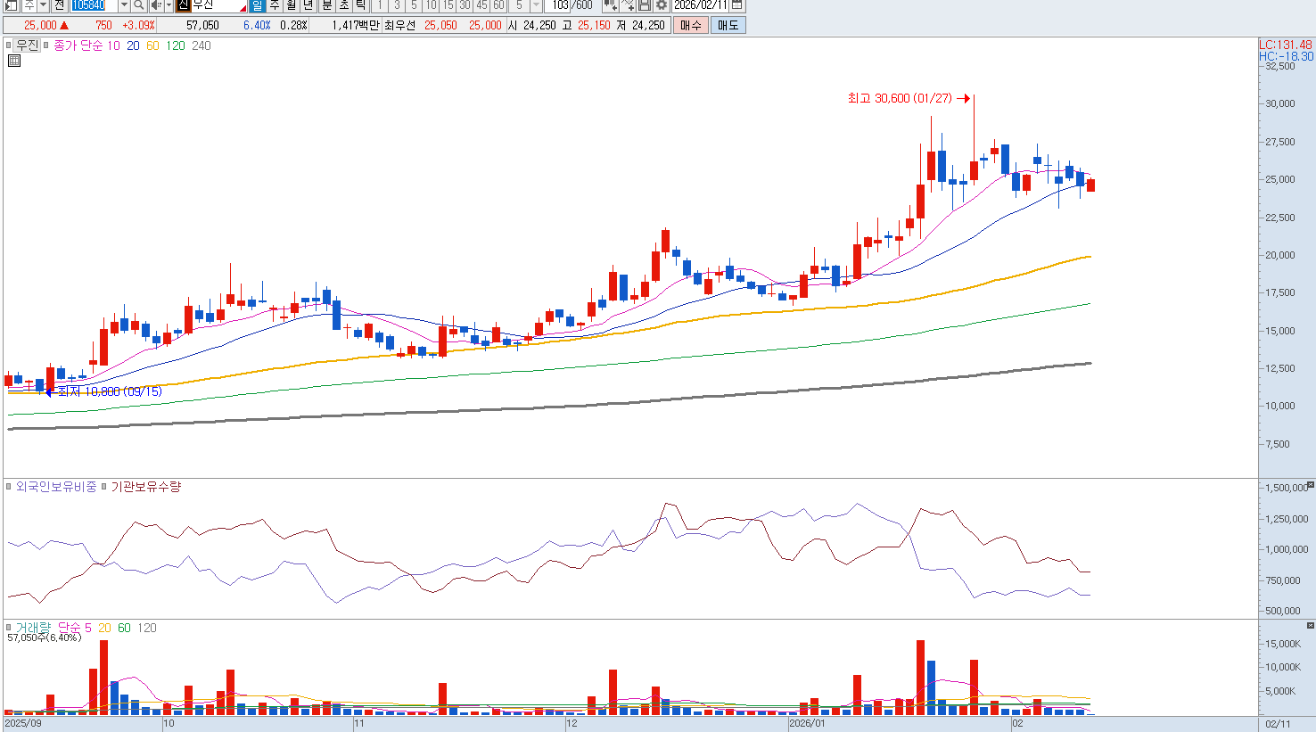우진은 원자력 발전소용 계측기 분야의 강자로 정부의 원전 확대 정책 수혜를 톡톡히 입었으나, 현시점에서는 '뉴스에 팔아라'라는 격언이 가장 적절한 종목입니다.