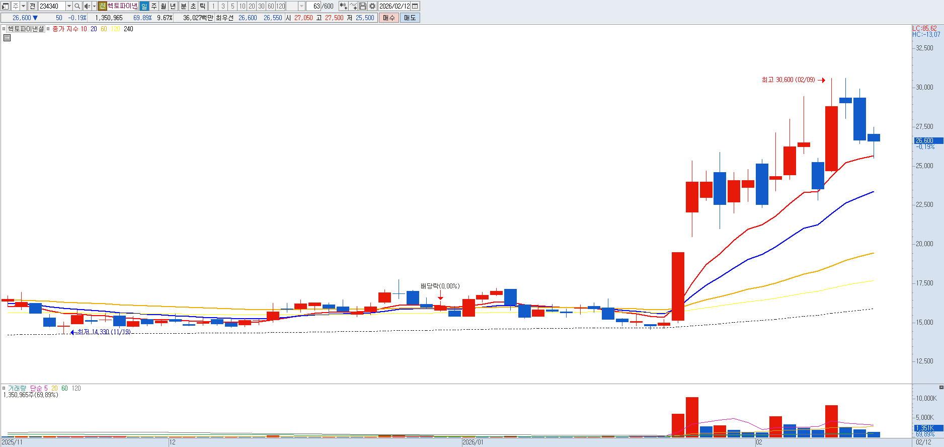 하지만 화려한 전망 이면에는 무시할 수 없는 리스크가 존재합니다. 우선, 규제 환경의 불확실성입니다. 국내 원화 스테이블코인 제도 확정이 지연되고 있으며, 가상자산 관련 법제화 과정에서 금융 당국이 요구할 엄격한 준법 감시 비용은 수익성에 하방 압력을 가할 수 있습니다. 또한, 대형 PG사들의 번들링 판매와 수수료 인하 경쟁이 심화되면서 마진율이 소폭 하락하는 추세입니다. 중요 지지라인은 25,000원입니다. |