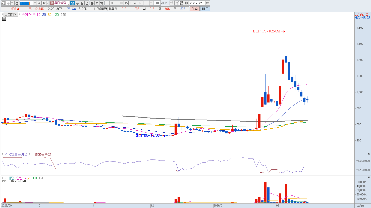 사업 구조 측면에서도 고수익 패키지 모델로의 전환이 순조롭게 진행 중입니다. 과거 용역 위주의 매출 구조에서 벗어나, 표준화된 AI 솔루션 라이선스와 유지보수 중심의 반복 수익(Recurring Revenue) 구조를 확립하며 이익의 질을 획기적으로 개선하고 있습니다. 국방부의 물류 자동화 사업 참여와 의료 로봇 검사 장비 분야로의 확장성 또한 유디엠텍을 단순한 제조 소프트웨어 기업이 아닌 종합 AI 자동화 솔루션 기업으로 리레이팅하게 만드는 요인입니다. 자율주행차와 지능형 로봇이 공장에서 쏟아져 나오는 미래, 그 모든 공정을 감시하고 최적화하는 '두뇌' 역할은 유디엠텍이 맡게 될 것입니다. 반등시마다 비중 축소 의견입니다. |