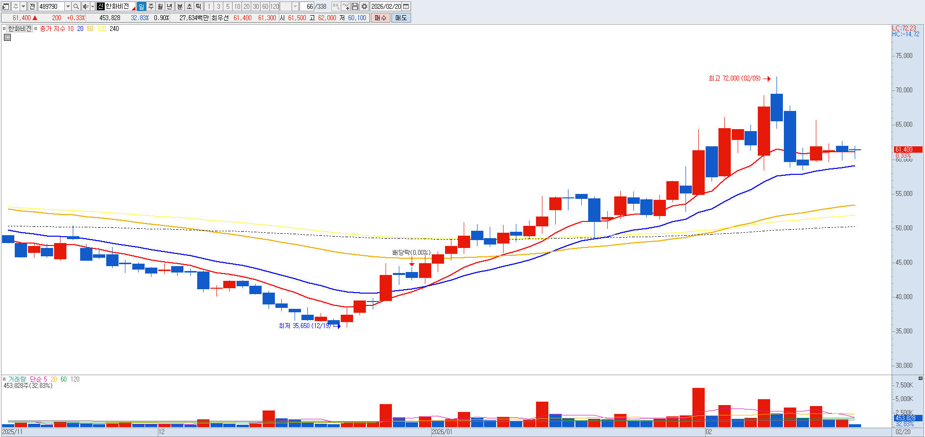 2026년 2월 기준 PER이 700배를 상회하는 비정상적인 밸류에이션 수치는 기업의 실질 가치보다는 분할 이슈와 테마적 수급에 의한 거품일 가능성이 큽니다. 기술적 반등이 나타날 때마다 분할 매도를 통해 포트폴리오의 안전성을 확보해야 하는 시점입니다. 매도의견입니다. |