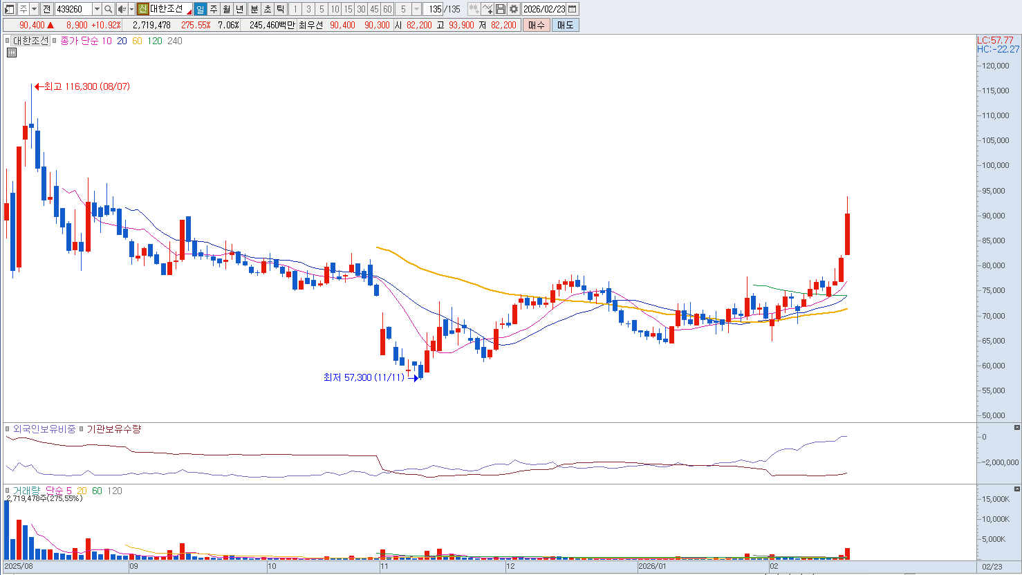 대한조선은 조선업 슈퍼 사이클의 수혜를 기대하며 상장했으나, 2026년 현재 대형 조선사들과의 체급 차이를 극복하지 못한 채 수주 경쟁력의 한계를 드러내고 있습니다. 동사의 주력인 중형 탱커선 시장은 이제 기술적 차별화보다는 가격 경쟁력이 최우선인 시장으로 변모했습니다. 특히 중국 조선사들의 압도적인 원가 절감 공세에 밀려 수주 점유율이 급격히 하락하고 있으며, 이를 타개하기 위한 친환경 선박 기술 확보 속도 또한 대형 3사에 비해 현격히 뒤처져 있습니다.