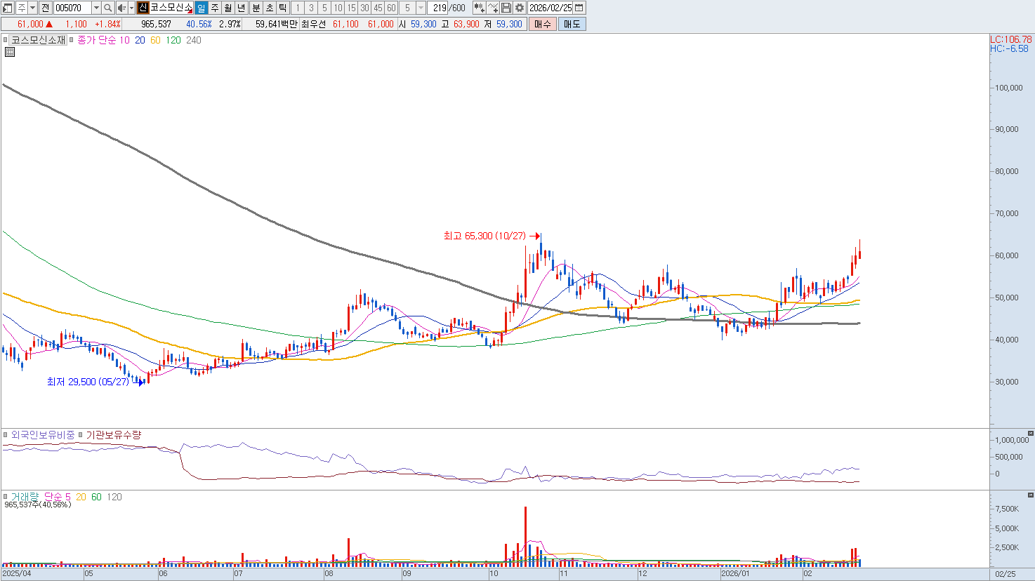 또한 모회사인 코스모그룹의 재무적 지원 역량이 한계에 도달했다는 시장의 우려도 매도 관점을 뒷받침합니다. 대규모 증설 자금을 마련하기 위해 빈번하게 발행된 전환사채(CB)와 유상증자는 주주 가치를 끊임없이 희석시키고 있으며, 잠재적인 주식 전환 물량은 주가 상승의 발목을 잡는 무거운 족쇄가 되고 있습니다. 리튬 등 핵심 광물 가격의 하락세가 진정되었음에도 불구하고, 양극재 판가 하락과 재고 자산 평가 손실 리스크는 여전히 현재 진행형입니다. 2차전지 테마의 낙수 효과만 기대하며 버티기에는 동사의 기술적 경쟁 우위가 모호하므로, 보수적인 관점에서의 포지션 정리가 필요한 시점입니다. |