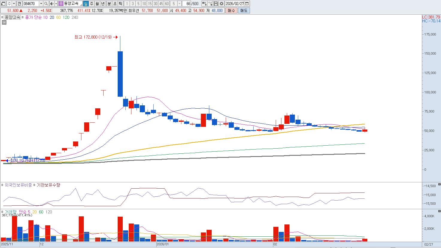 운영 측면에서의 리스크 또한 매도 의견을 뒷받침합니다. 고속버스 산업은 유가 변동과 인건비 상승에 매우 취약한 구조를 가지고 있는데, 2026년 현재 물류 및 운송 업계 전반의 구인난으로 인한 기사 임금 상승은 피할 수 없는 비용 압박이 되고 있습니다. 반면 요금은 공공 요금 성격이 강해 인상이 매우 제한적이어서, 비용 상승분을 고객에게 전가하기 어려운 전형적인 수익성 악화 구조에 갇혀 있습니다. 또한 젊은 층을 중심으로 한 카셰어링 서비스의 보편화와 자율주행 기술의 발전으로 인한 개인용 이동 수단의 편의성 증대는 고속버스의 이용객 수를 지속적으로 갉아먹고 있습니다. 전통적인 여객 운송업의 한계를 넘어서는 획기적인 비즈니스 모델 전환이 부재한 상황에서, 동양고속이 보유한 유형 자산의 가치보다는 사업 자체의 지속 가능성에 대한 의구심이 커지는 시점입니다. 매도의견입니다. |