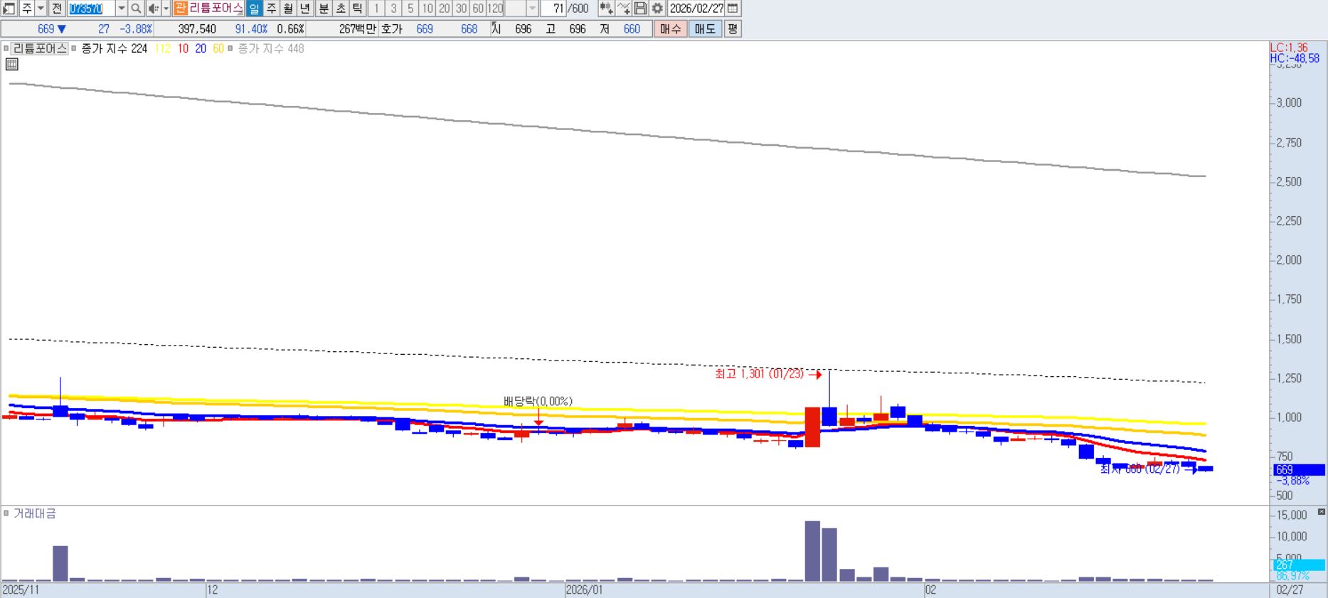 리튬포어스는 2026년 현재 단순한 주가 조정을 넘어 기업의 존속 가능성 자체가 시험대에 오른 '위험 구간'에 진입해 있습니다. 가장 치명적인 리스크는 2025년 3월 '관리종목'으로 지정된 이후, 2026년 현재까지도 재무 구조 개선의 실마리를 찾지 못하고 있다는 점입니다.